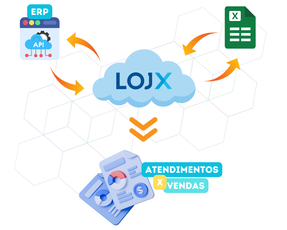 Conecte o Lojx ao seu ERP via API ou planilhas Excel e relacione os atendimentos registrados com as